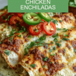 These Amazing 20-Minute Green Chile Chicken Enchiladas are a flavorful and comforting Mexican-inspired dish featuring tender shredded chicken wrapped in soft tortillas, smothered in tangy green enchilada sauce, a creamy cheese mixture, and baked to bubbly perfection. Ideal for a quick weeknight dinner, they combine the zesty kick of diced green chiles with the creaminess of sour cream and Monterey Jack cheese, garnished with fresh cilantro for an extra burst of freshness.