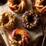 These Apple ‘Doughnuts’ are a fun, healthy snack perfect for kids and adults alike. Crunchy apple slices are transformed into doughnut shapes, topped with creamy sweetened soft cheese, optional nut butter, and colorful sprinkles for a delightful and nutritious treat.