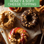 These apple ‘doughnuts’ are best enjoyed fresh to keep the apple slices crisp. If needed, store them in an airtight container in the refrigerator for up to 1 day. To prevent browning, brush apple slices with a little lemon juice before assembling. Avoid storing with toppings applied, as they may make the apples soggy.