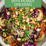 A vibrant and crunchy Asian Cabbage Salad combining green and red cabbage with fresh bell pepper, carrots, edamame, and toasted almonds, all tossed in a flavorful peanut-ginger dressing. This refreshing salad is perfect as a light meal or a delightful side dish.