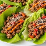 Keywords: Asian lettuce wraps, ground beef lettuce wraps, low carb dinner, easy dinner recipe, healthy wraps, gluten free, quick beef recipe