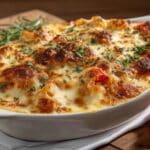 - Bake: Place the baking dish in the preheated oven and bake for 15–20 minutes until the cheese is bubbly and golden brown.