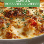 This baked gnocchi with tomato and mozzarella is a comforting and easy Italian-inspired dish. Tender potato gnocchi is cooked and tossed in a flavorful tomato sauce, then topped with melty mozzarella and Parmesan cheese before baking to golden perfection.