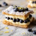 Delight in the fresh and zesty flavors of these Blueberry Lemon Cream Pastries, featuring a smooth lemon-infused pastry cream nestled inside golden, flaky puff pastry topped with juicy blueberries and a dusting of powdered sugar. Perfect for a sophisticated dessert or a special brunch treat.