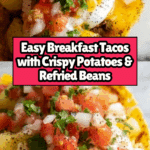 Keywords: Breakfast tacos, scrambled eggs, refried beans, crispy potatoes, Mexican breakfast, easy breakfast recipe