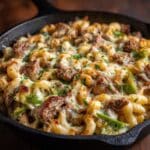This Cajun Cream Cheese Alfredo Bowties with Spiced Ground Beef is a rich and flavorful pasta dish combining tender bowtie pasta with a creamy, spicy Alfredo sauce and savory Cajun-seasoned ground beef. The creamy sauce, made from cream cheese, heavy cream, and Parmesan, complements the smoky, well-seasoned beef, creating a comforting and indulgent meal perfect for weeknight dinners or casual gatherings.