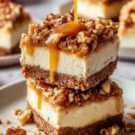 These Caramel Apple Cheesecake Bars combine a buttery graham cracker crust, a smooth cream cheese layer, tender spiced apples, and a crunchy pecan streusel topping, all drizzled with a rich homemade caramel sauce. Perfect as a delicious fall dessert or a sweet treat anytime.