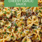 Keywords: Cheesy Bowtie Pasta, Cajun Ground Beef, Garlic Cream Sauce, One-Pan Pasta, Comfort Food, Easy Dinner
