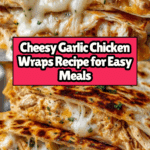 Cheesy Garlic Chicken Wraps are a delicious and easy-to-make meal featuring tender shredded chicken mixed with a flavorful garlic cheese blend, all wrapped in warm, buttery tortillas. Perfect for a quick lunch or dinner, these wraps combine creamy cheeses, aromatic garlic, and fresh herbs for a satisfying and comforting dish.