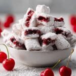 Cherry Cheesecake Puppy Chow Delight is a sweet and crunchy snack mix featuring Rice Chex cereal coated in a smooth white chocolate and cherry extract blend, dusted with powdered sugar and colorful sprinkles. It’s an easy no-bake treat perfect for parties, holidays, or anytime you crave a nostalgic, dessert-inspired snack.