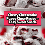 Cherry Cheesecake Puppy Chow Delight is a sweet and crunchy snack that combines the flavors of white chocolate and cherry for a fun treat. It’s easy to make and perfect for parties or a simple indulgence at home.
