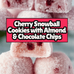Cherry Snowball Cookies are a delightful twist on classic snowball or Russian tea cake cookies, featuring a subtle cherry flavor enhanced by cherry extract and chopped maraschino cherries, combined with almond and vanilla extracts for a rich, aromatic cookie. These buttery, tender cookies are studded with mini chocolate chips and finely ground pecans for texture and a hint of nuttiness, then rolled in powdered sugar for a perfect snowy finish.