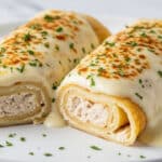 Keywords: Chicken Alfredo Lasagna, lasagna rolls, creamy chicken pasta, baked lasagna, easy Italian dinner, cheesy chicken recipe