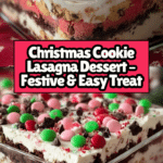 This Christmas Cookie Lasagna Dessert is a delightful, no-bake layered treat perfect for holiday celebrations. Featuring layers of high-quality chocolate chip or gingerbread cookies, creamy whipped topping blended with cream cheese, and optional fruity layers like raspberries or cherries, it’s a festive and indulgent dessert that sets beautifully in the fridge and enchants with every bite.