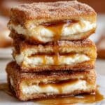 This Churro Cheesecake is a delectable fusion dessert combining the creamy richness of classic cheesecake with the sweet, spicy crunch of churro-flavored crust and topping. Featuring a buttery cinnamon-sugar crust made from crescent roll dough, this easy-to-make treat is perfect for any occasion where you want a unique twist on a traditional dessert.