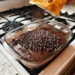 - Step 6: Pour the remaining brownie batter over the chocolate chips and spread gently to cover.