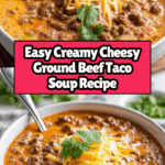 This creamy cheesy ground beef taco soup is a comforting and flavorful meal perfect for any day of the week. Packed with hearty ingredients and a rich, cheesy broth, it’s simple to make and sure to please the whole family.