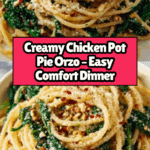 This Creamy Chicken Pot Pie Orzo is a comforting twist on classic pot pie flavors, transformed into a hearty, creamy pasta dish. It combines tender chicken, vegetables, and orzo in a rich, flavorful sauce that’s perfect for a cozy family dinner.