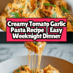 Keywords: Creamy tomato pasta, garlic pasta recipe, easy pasta dinner, Italian pasta dish, penne pasta, fettuccine pasta, Parmesan cream sauce