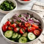 Keywords: cucumber tomato salad, fresh salad, no-cook salad, summer salad, healthy side dish, easy salad recipe, vegetarian salad
