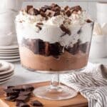 Keywords: brownie trifle, chocolate pudding, layered dessert, party dessert, whipped topping, Hershey’s chocolate