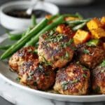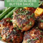 These easy baked chicken meatballs are a delicious and healthier alternative to traditional meatballs. Juicy, flavorful, and coated in a bright lemon herb butter sauce, they make a perfect weeknight dinner or party appetizer.