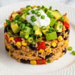 - Cool and Serve: Remove the casserole from the oven and let it cool for 5-10 minutes. Garnish with fresh cilantro, green onion, salsa, and avocado if desired before serving. This resting time helps the casserole set for easier serving.