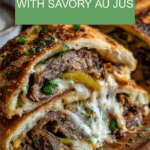 Store leftover roll ups in an airtight container in the refrigerator for up to 2 days. Reheat in a 350°F oven for about 8 minutes to restore crispiness. The au jus can be stored separately in the fridge for up to 3 days and reheated gently on the stove.