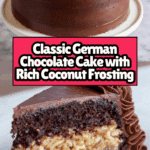 This classic German Chocolate Cake recipe features a moist, rich chocolate cake layered and topped with a signature gooey coconut-pecan frosting and a smooth chocolate buttercream frosting. Perfectly balanced between decadent chocolate and nutty coconut flavors, this cake is ideal for celebrations or an indulgent dessert.
