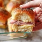 Keywords: Ham sliders, Havarti cheese sliders, party snacks, Hawaiian rolls, easy appetizers