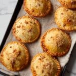 Store cooled hand pies in an airtight container at room temperature for up to 2 days. For longer storage, refrigerate for up to 5 days and reheat in the air fryer or oven to restore crispiness. These pies are best enjoyed warm or at room temperature.