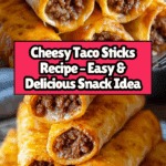 Irresistibly Cheesy Taco Sticks are a delicious and easy-to-make snack or appetizer featuring seasoned ground beef wrapped in soft pizza dough with melty cheese sticks inside. Perfect for game days, parties, or family dinners, these savory taco-inspired treats combine the flavors of taco beef and cheese in a convenient handheld form.