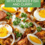 Keywords: Kedgeree, curried rice, smoked fish, British recipe, comfort food, curried rice and fish, poached fish, easy dinner, brunch recipe