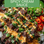 Korean BBQ Steak Rice Bowls are a flavorful and satisfying meal that combines tender marinated steak with fresh vegetables and a spicy cream sauce. Perfect for a quick weeknight dinner, these bowls balance savory, sweet, and spicy elements in every bite.