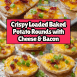 Loaded Baked Potato Rounds are a delicious and bite-sized twist on the classic loaded potato. Crispy on the outside and soft inside, topped with cheese, bacon, and a hint of garlic, they make a perfect appetizer or snack for any occasion.