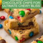 Keywords: M&M cookie bars, chocolate chip cookie bars, easy cookie bars, colorful cookie bars, dessert bars