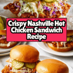 These Nashville Hot Chicken Sandwiches feature crispy, spicy fried chicken coated in a flavorful cayenne pepper-based hot oil sauce, served on toasted burger buns with creamy mayonnaise, crunchy coleslaw, and tangy pickles. This recipe delivers the perfect balance of heat, crunch, and creamy textures for a classic Southern-inspired meal.