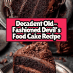 This Old-Fashioned Devil’s Food Cake is a rich, moist, and decadent chocolate cake layered with a luscious semi-sweet chocolate frosting. Featuring a tender crumb made with cocoa powder, coffee, and sour cream, this classic dessert is perfect for chocolate lovers seeking a timeless celebration cake that melts in your mouth.