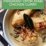 Keywords: Opor Ayam, Indonesian chicken curry, coconut milk chicken, Indonesian cuisine, savory chicken curry, traditional Indonesian recipe