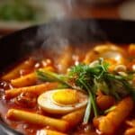 Quick & Easy Tteokbokki is a flavorful and spicy Korean street food made with chewy rice cakes, fish cakes, and a savory gochujang-based sauce. This recipe is perfect for a comforting snack or meal that comes together quickly using simple ingredients and a stovetop simmering method.