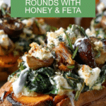 Keywords: roasted sweet potatoes, sweet potato rounds, honey and feta sweet potatoes, spiced sweet potatoes, vegetarian side dish, roasted vegetable appetizer