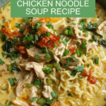 A comforting and flavorful Rotisserie Chicken Noodle Soup made from scratch using a homemade chicken broth simmered with fresh vegetables and herbs, tender shredded rotisserie chicken, and wide egg noodles for a classic, hearty meal.