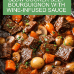 Keywords: beef bourguignon, slow cooker beef stew, French beef stew, red wine beef stew, comfort food, slow cooker recipes, easy beef stew