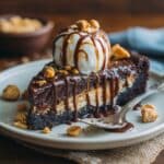 This Snickers Peanut Butter Brownie Pie is a decadent treat combining rich chocolate brownie, creamy peanut butter, gooey caramel, and crunchy peanuts all in a buttery pie crust. It’s the perfect dessert for any chocolate lover craving a sweet, salty, and satisfying slice.