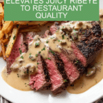 This Steak with Bourbon Peppercorn Cream Sauce is a rich and flavorful dish perfect for elevating any dinner. Tender ribeye paired with a creamy, boozy peppercorn sauce and crispy fries makes for a truly satisfying meal.
