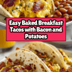 These Tasty Baked Breakfast Tacos combine crispy bacon, seasoned potatoes, fluffy eggs, and melted Monterey Jack cheese inside soft corn tortillas. Baked to perfection, this breakfast dish is flavorful, satisfying, and easy to prepare for a delicious start to your day.