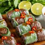It’s best to assemble Thai Basil Beef Rolls just before serving to keep the rice paper tender and the herbs fresh. You can prepare the beef filling a few hours in advance and refrigerate it.