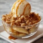 - Cool and Serve: Remove the apple crisp from the oven and allow it to cool for at least 10 minutes to let the juices thicken slightly. Serve warm with optional toppings such as vanilla ice cream, whipped cream, or chopped nuts for extra flavor and texture.