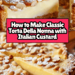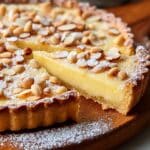 Torta della Nonna is a classic Italian dessert featuring a buttery, tender pasta frolla crust filled with rich, smooth lemon-scented custard and topped with crunchy pine nuts and a dusting of powdered sugar. This perfect balance of creamy and nutty flavors makes it a beloved traditional treat that’s perfect for any occasion.