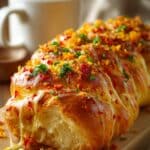 - Optional Glaze and Serve: Immediately after baking, brush the bread top with 2 tablespoons melted butter and sprinkle with fresh chopped parsley, if desired. Let the bread cool in the dish for 10-15 minutes on a wire rack before serving warm. Pull apart the swirled rolls and enjoy the rich melting flavors.